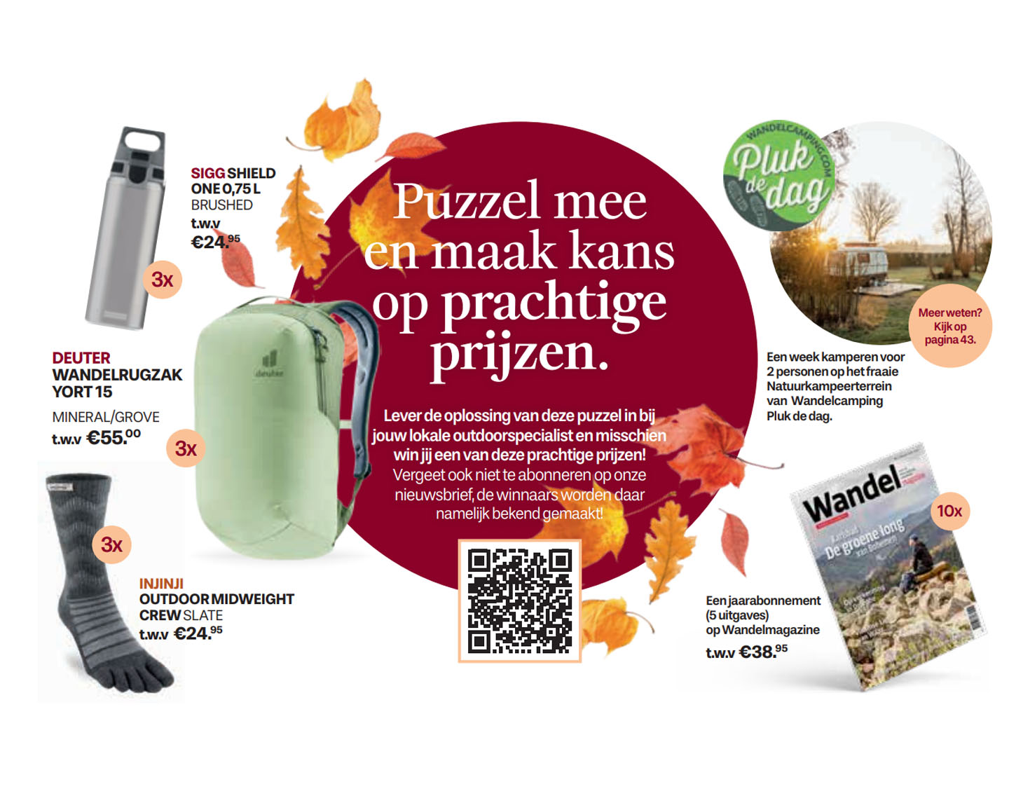 Met de puzzel-winactie zijn weer hele mooie prijzen te winnen. Wat dacht je bijvoorbeeld van een praktische deuter rugzak, comfortabele Injinji teensokken of een week kamperen?
