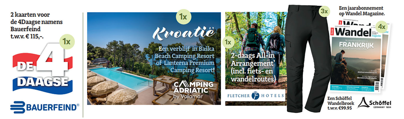 1x 2 kaarten voor de 4Daagse namens Bauerfeind t.w.v. € 115